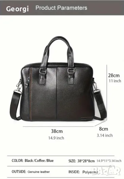 Мъжка елегантна, луксозна и стилна бизнес чанта /Офис кежуал за лаптоп 15”!