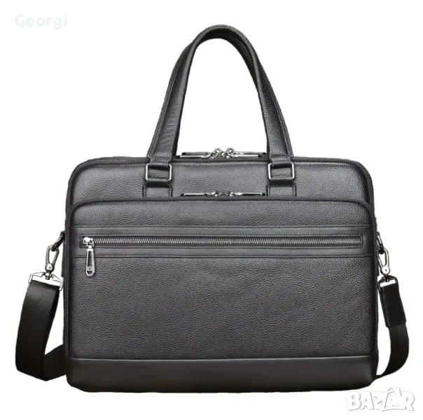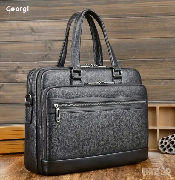 Премиум, луксозна и елегантна бизнес чанта (за лаптоп 15,6”) Черна естествена кожа!