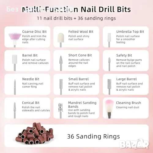 Професионална електрическа пила за нокти – 11 накрайника, 36 шлайфащи ленти и четка за перфектен маникюр и педикюр