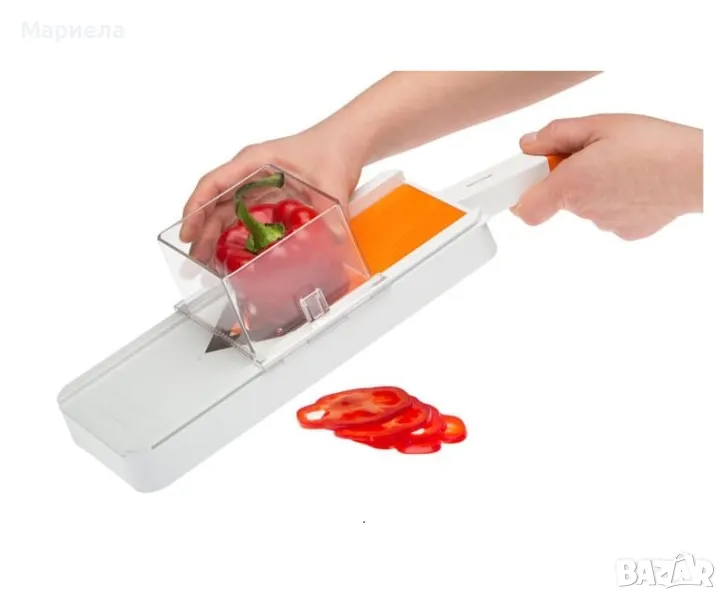 Безопасност при рязане благодарение на специални държачи – хранителните продукти са здраво закрепени по време на рязане, така че няма опасност да се изплъзнат.