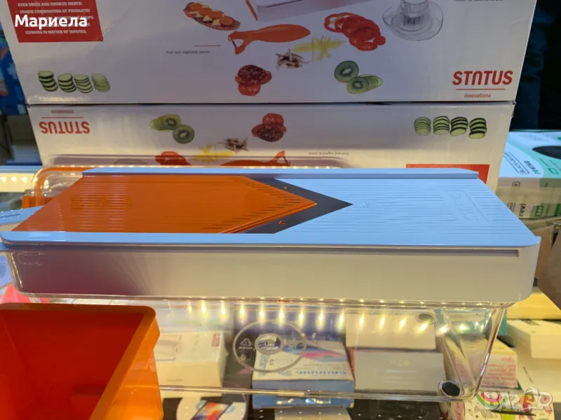Status ръчно ренде за зеленчуци се отличава с много остри остриета, които са достатъчно здрави, за да нарежат сушени колбаси и прошуто, както и по-твърди видове хляб ( от елда, ръж, пълнозърнест) и сирена. Голямата режеща повърхност гарантира, че работата ще бъде свършена бързо и качествено. Благодарение на V-образното острие и успоредното движение на горната част, всички резени ще бъдат нарязани равномерно.