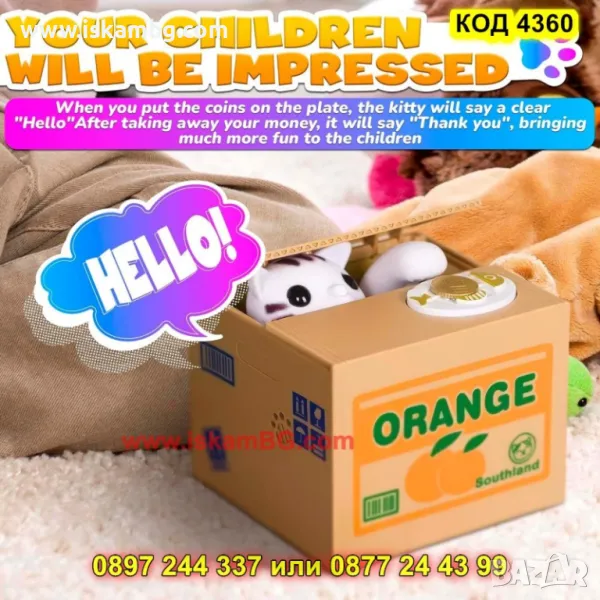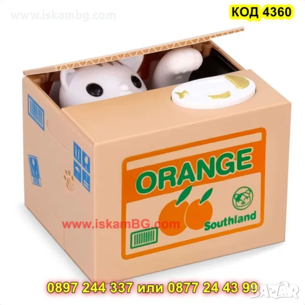 Превърнете събирането на монети в истинско приключение с тази уникална детска касичка, в която палаво котенце "краде" монетите и ги прибира в своето тайно скривалище!