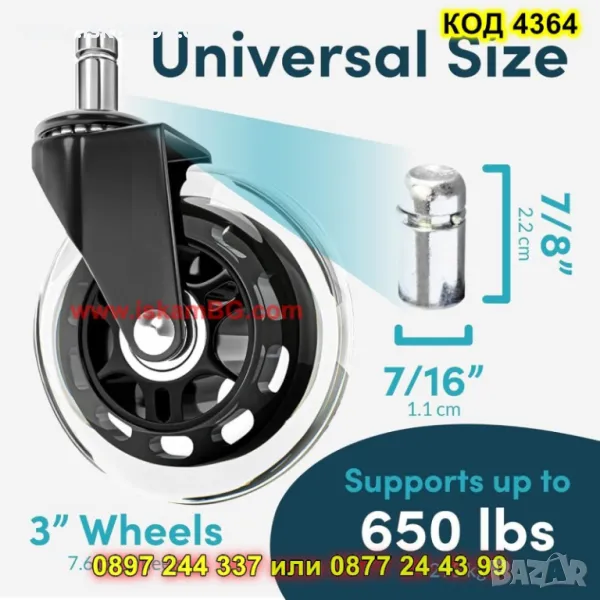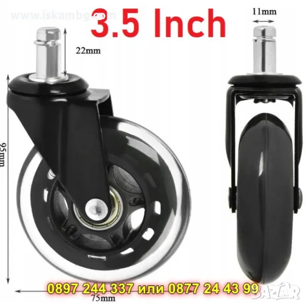 Диаметър на колелото: 63mm за 2.5 инчовите колела и 75 мм за 3.5 инчовите колела - преди на направите поръчка е нужно да посочите желания от Вас размер!