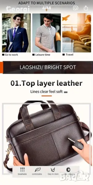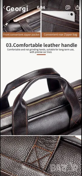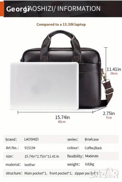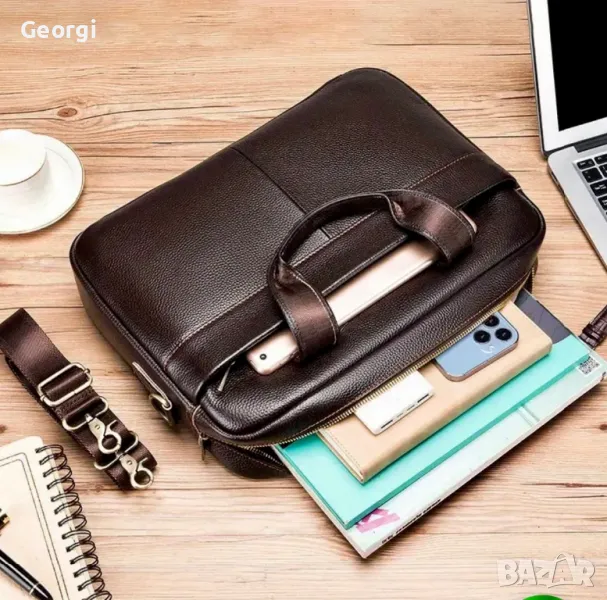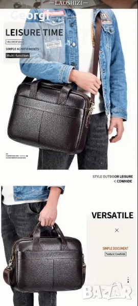 Ежедневна, Елегантна и Стилна кожена офис чанта за лаптоп в два модерни цвята (Кафяв и Черен) ! Направена от мека, лъскава и висококачествена естествена телешка кожа 4++!