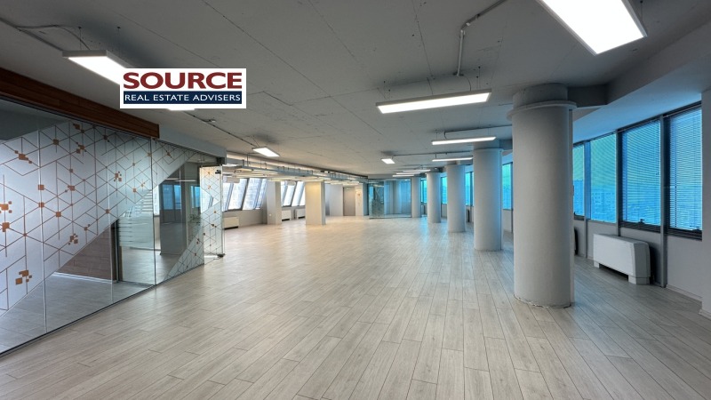 2. Разпределение: 1 голямо Open space помещение, 4 отделни работни помещения преградени със стъклени преградни стени, оборудвана кухня, рецепция, сървърно помещение, малък склад, 5 wc с баня. Офисът може да бъде изцяло с Open space разпределение или допълнително преграден според изискванията на Наемателя.