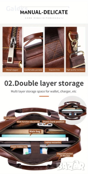 Проектирана с подсилена кройка и здрави шевове, металически ципове, функционални и удобни отделения тази чанта е точното допълнение и помощник в натоварената Ви работна седмица.