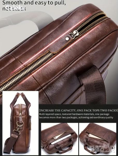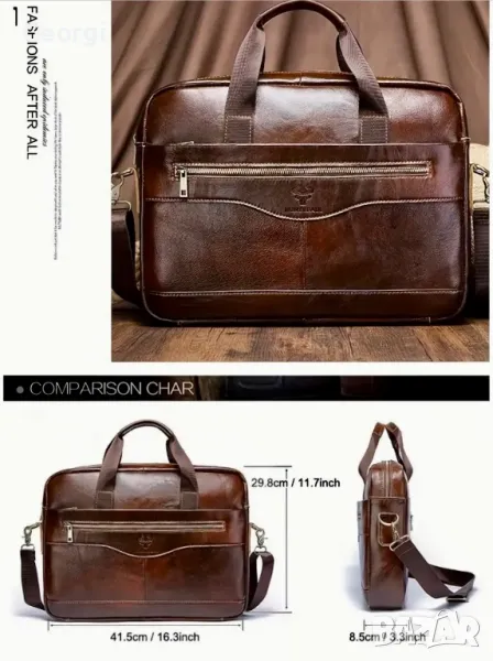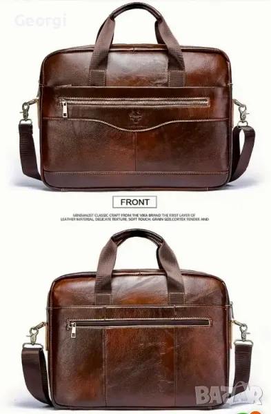 Мъжка ежедневно/функционална бизнес чанта (за лаптоп 15,6”) Естествена кожа!