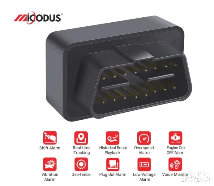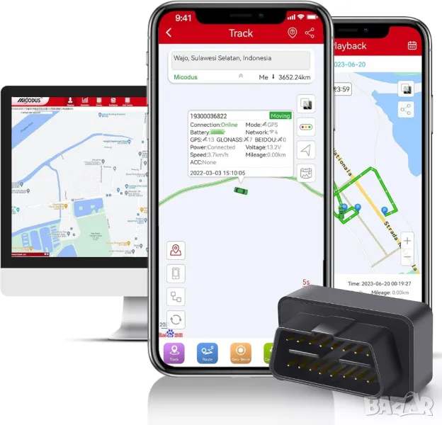 GPS тракер с безкабелен монтаж в OBD порт, подслушване, превишена скорост, геозони, история