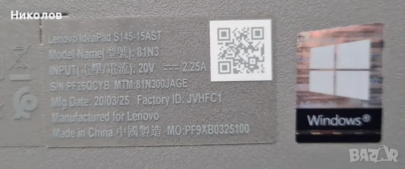 Лаптоп Lenovo IdeaPad S145-15AST 81N3 Metal Inox