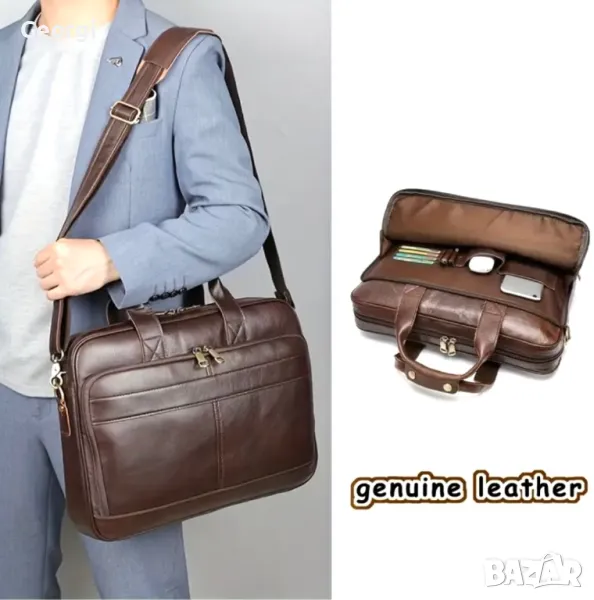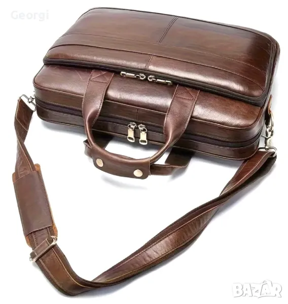 Мъжка бизнес чанта с аристократичен ретро дизайн (за лаптоп 15”) естествена кожа !