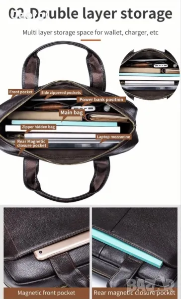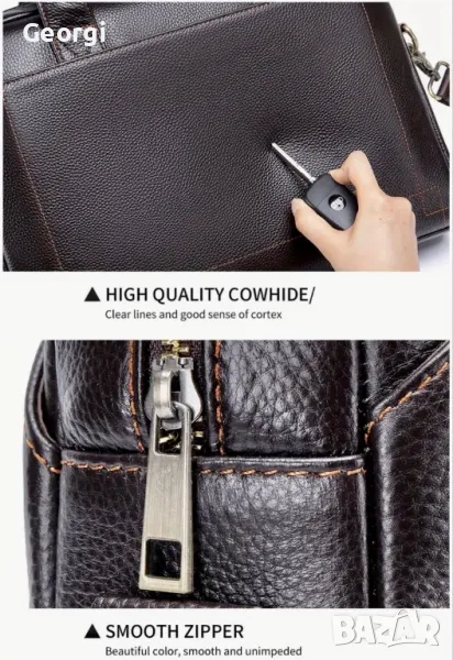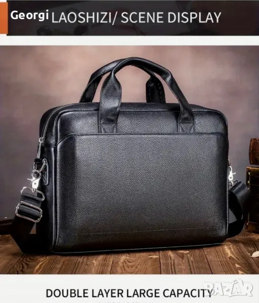 Елегантна, Красива и Функционална кожена бизнес чанта (куфарче за лаптоп 15”) в два класически цвята!!