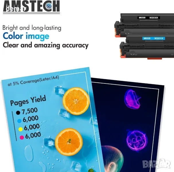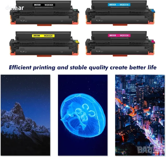Тази групова опаковка тонер касети включва четири цвята: черен, циан, жълт и магента, всеки предварително оборудван с чип за лесна инсталация. Черният тонер дава до 7500 страници, докато цветните тонери дават по 6000 страници при 5% покритие. Съвместим с принтери от серия Color LaserJet Pro MFP M479 и серия Color LaserJet M454, осигурявайки надеждна работа и висококачествени разпечатки.