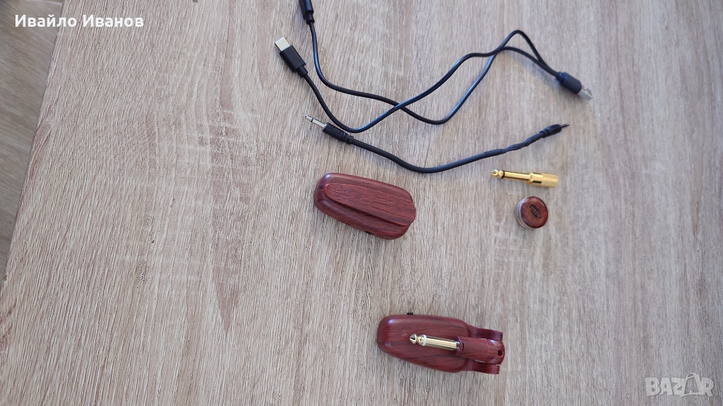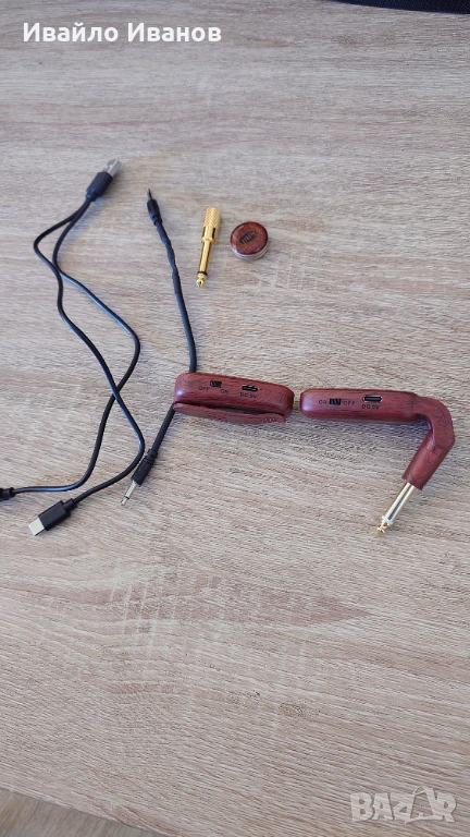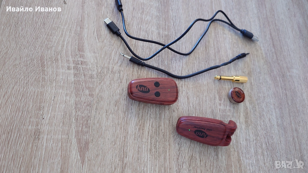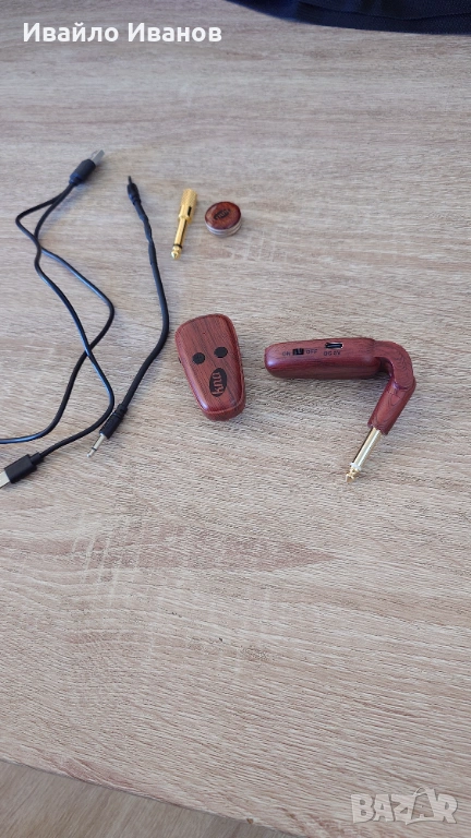Пълен комплект (приемник, предавател и адаптер) дистанционно за струнен инструмент - китара, бузуки и др. Без батерии (презареждаеми)