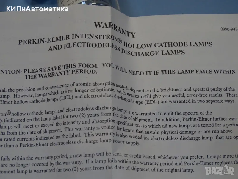 Предлагаме употребявана, в отлично състояние и запазени технически параметри, лампа със сух катод производство на американската компания Perkin-Elmer USA.