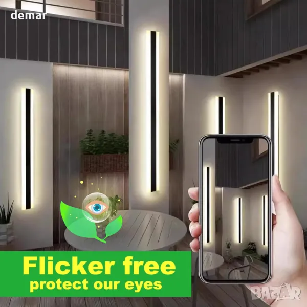 oumanschak Външна стенна лампа Захранвана от мрежата 60CM, 20W, 3 цветни температури, IP65