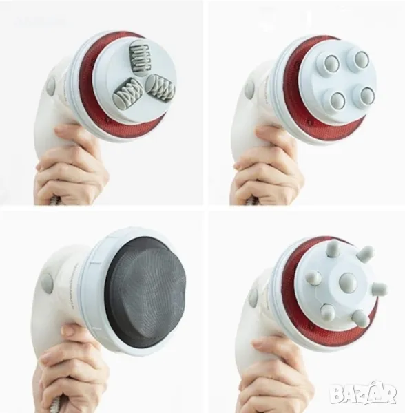 Инфрачервен вибриращ антицелулитен масажор 5 в 1 Cellyred InnovaGoodsмасажни приставкиЗа различен тип масажиране в различните части на тялото Полезен за здраветоМасажът премахва напрежението и подобрява кръвообращението. предлага дълбок и мощен масаж благодарение на системата с изместена от центъра въртяща се ос. Вибромасажното устройство ще ви помогне да се отървете от излишните мазнини и целулита само за няколко седмици. Той е лек, преносим, с ергономична, неплъзгаща се дръжка, което прави този масажор надежден продукт.Relax & Tone е уред за масаж, подходящ за всяка област на тялото, включително масаж на лице (разкрасяващ масаж). Масажорът Relax е оборудван с 4 сменяеми масажни глави:- глава с въртящи се топчета за масаж на цялото тяло: ръце, дупе, бедра, корем и др.- глава с вълнообразна повърхност за масаж на лицето