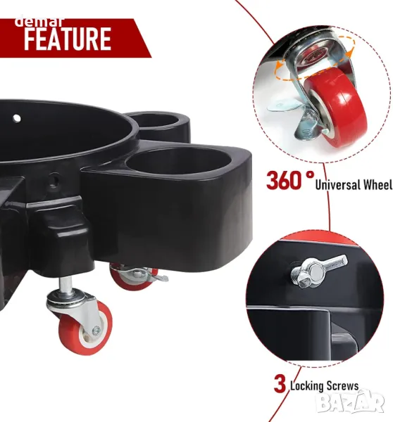 Bucket Dolly 22,7 литра тежкотоварна подвижна количка с 5 подвижни въртящи се колелца