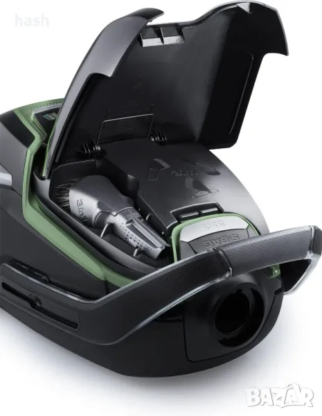 Поради екологични съображения, VX9 е изработен от 70% висококачествен рециклиран материал Перфектен за събиране и обработка на прах - особено безшумен, само с 65 dB (A) VX9 консумира 60% по-малко енергия в сравнение с конвенционалната прахосмукачка 2200W и е също толкова мощна VX9 е оборудван с голям обем от 5 литра торба за прах, така че торбата за прах трябва да се сменя по-малко С радиус от 12 метра, можете да запишете досадната синхронна промяна Филтърът Allergy Plus дори филтрира малки частици, като полени и спори, при 99,9%, което го прави идеален за хора, които страдат от алергии За оптимално боравене с всички повърхности, просто сменете силата на засмукване с бутона безстепен VX9 има удобна дръжка за носене с практична защитна лента за мебели, която предпазва мебелите от увреждане от удари и черни ивици Обхват на доставката: Аспиратор, филтър и торба (вече готови за стартиране), твърда подова накрайник, 3 в 1