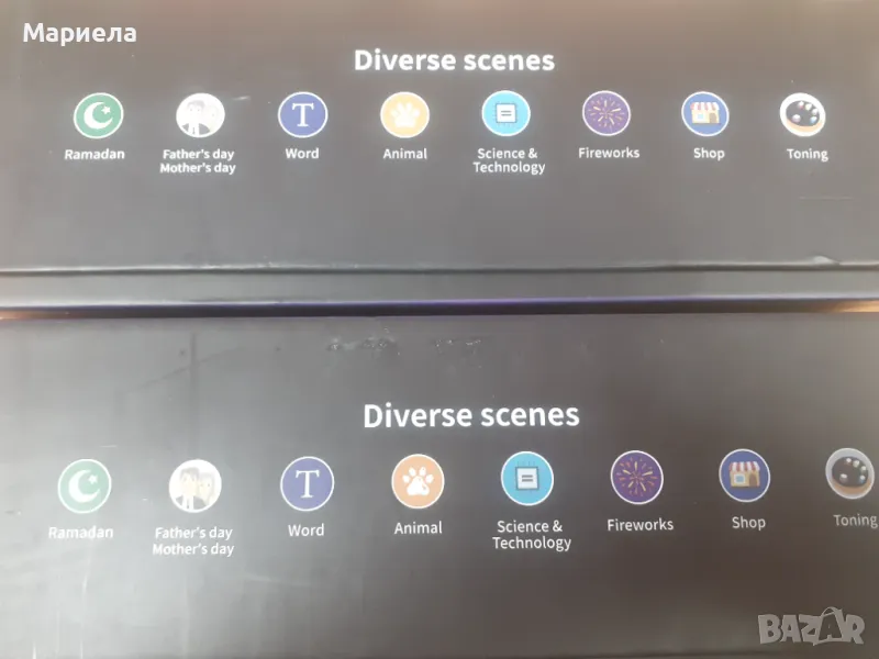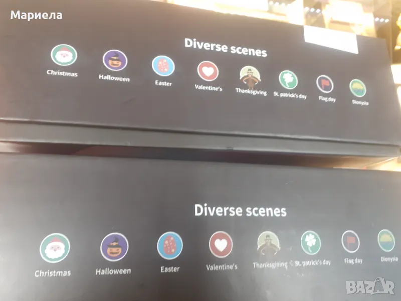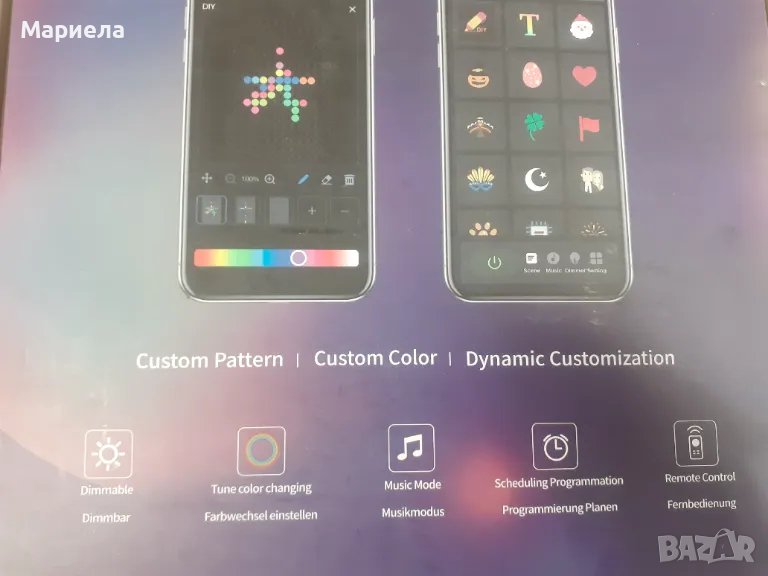 Имат си всичко необходимо за закрепяне. Също така имат и готови сцени- изображения за различни поводи, а може и дие да си създавате ваши чрез APP на телефона