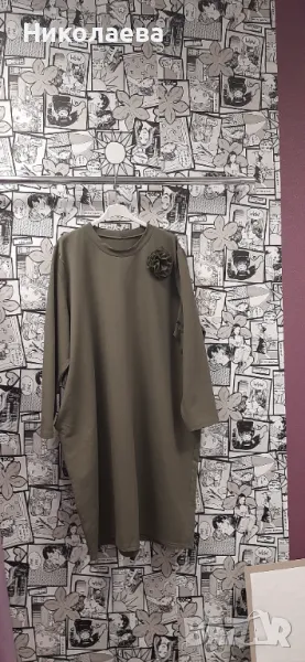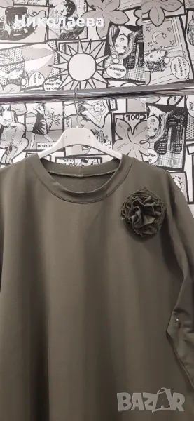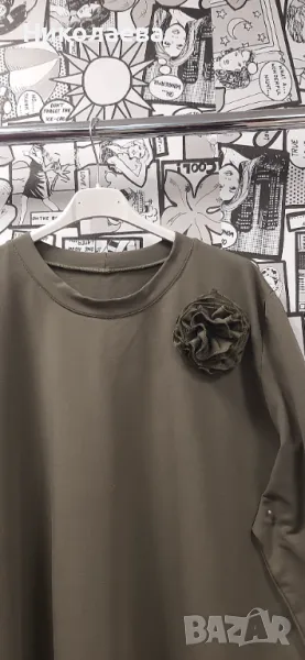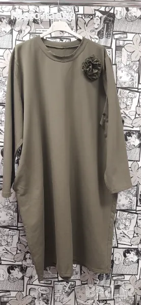 Обло деколте, дълъг ръкав, декорация цвете- неподвижно, странични скрити джобове, прав модел!