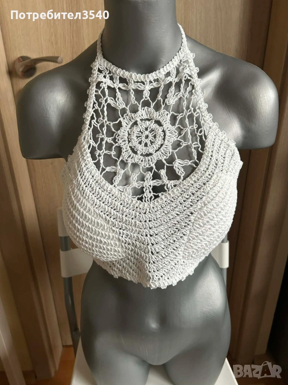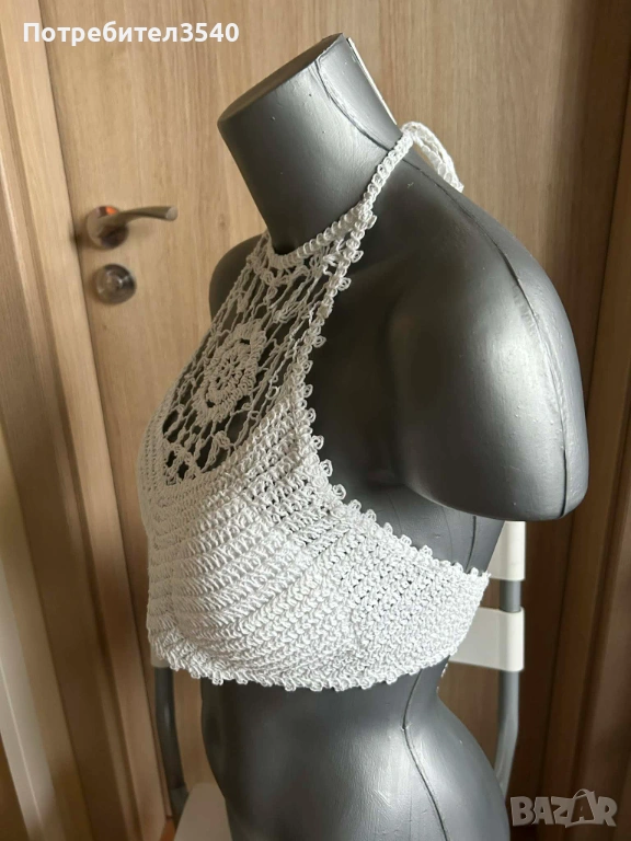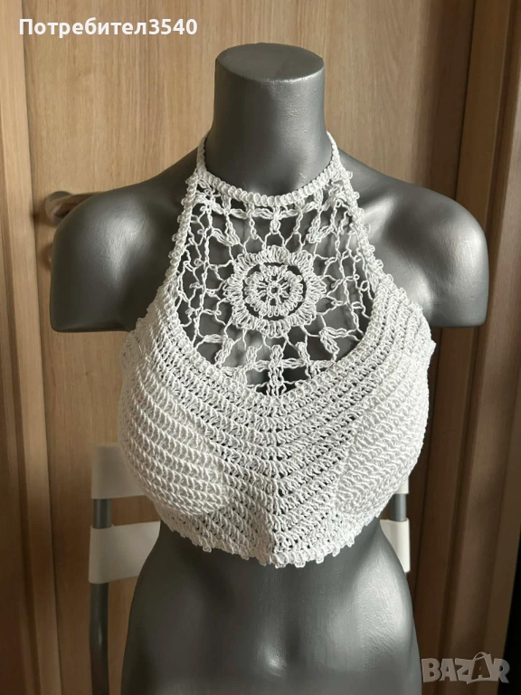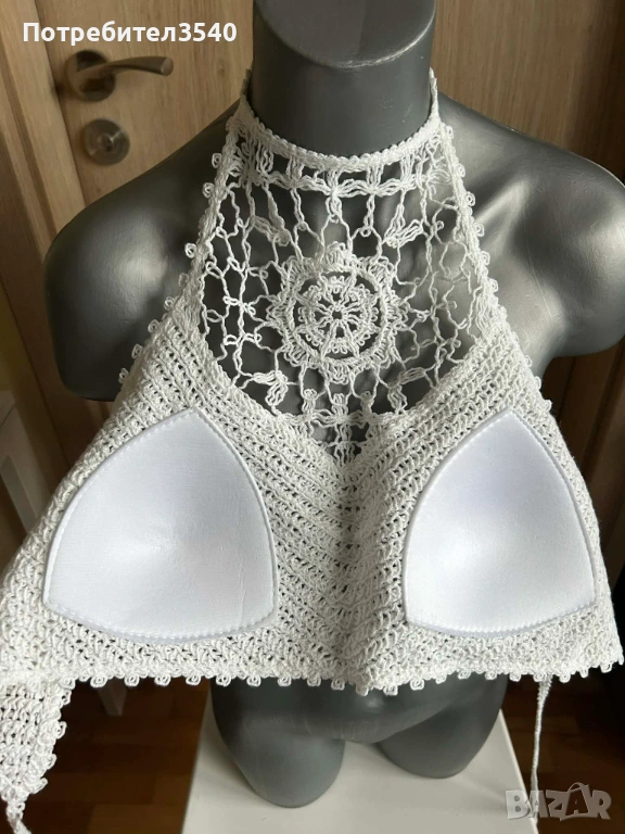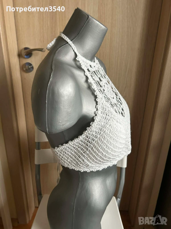 Бял дамски плажен топ с връзки → Обява 49288198