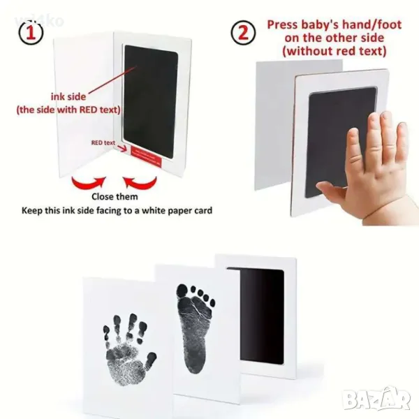 Този комплект за отпечатък на ръчичка или краче е идеалният начин да запазите красиви спомени от първите месеци на вашето дете. Безопасен, лесен за използване и без необходимост от пряк контакт с мастило, този продукт гарантира чист и ясен отпечатък, без да изцапа кожата на бебето.