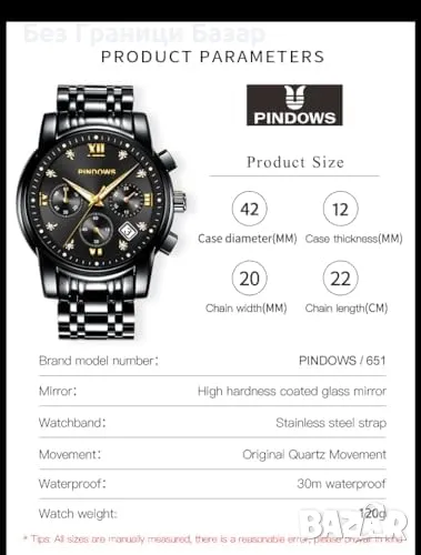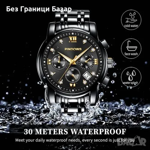 Прецизен кварцов хронограф – Оригинален кварцов механизъм с висока точност и дълъг живот на батерията (до 2-3 години).