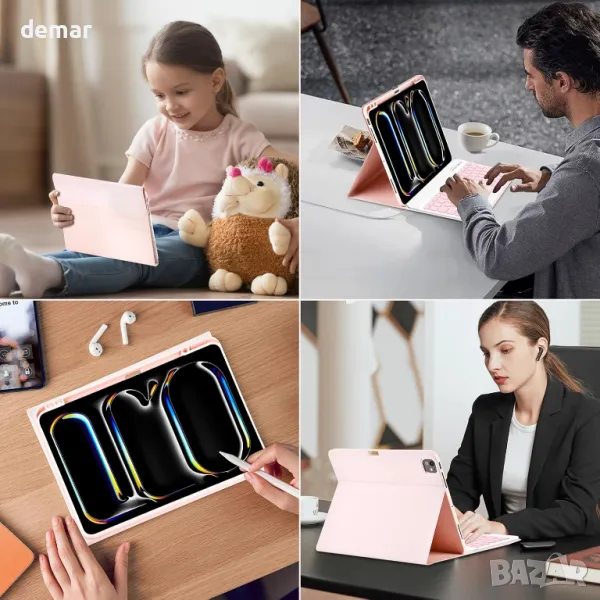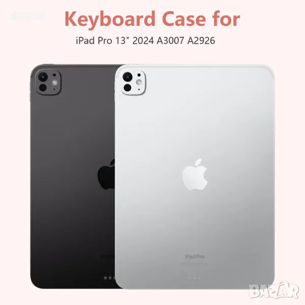 Магнитен разглобяем калъф с клавиатура с дизайн на обръщащ се магнит, включващ безжична Bluetooth клавиатура със 7-цветно регулируемо фоново осветление. Дълъг живот на батерията с до 60 часа употреба при пълно зареждане и функция за автоматично заспиване/събуждане за пестене на енергия. Три регулируеми ъгъла на гледане за гъвкавост, превръщайки iPad в устройство, подобно на лаптоп, с вграден държач за молив (моливът не е включен). Прецизни изрези за лесен достъп до всички функции, предлагащи пълна защита със здрав калъф и мека неплъзгаща се вътрешност. Съвместим с iPad Pro 13" (M4 2024) A3007, A2925, A2926.