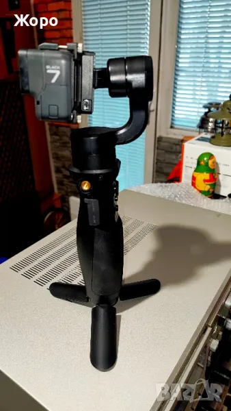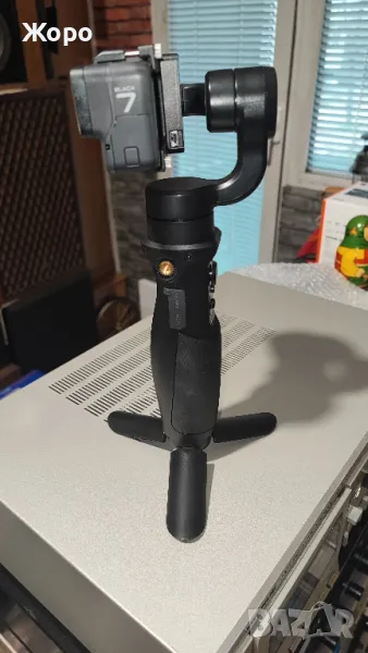 Гимбала работи идеално,батерия държи седмица и горница внос от Америка ползувал съм го със GoPro7 но камерата изчезна със други модели не зная дали е съвместим, качвах го във фейсбука поръча го един човек от Русе но ми го върна понеже неговата камера е GoPro10 тя е по голяма от 7цата и не може да влезе в скобата която държи камерата за гимбала,пиша го това да не се поръва и само да го разкарваме по куриерите .