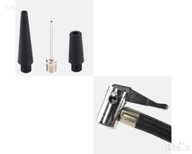 Комплекта включва три накрайника за помпене: топки, вело гуми и други