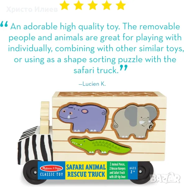 Характеристики на Дървено детско камионче сортер Сафари Melissa & Doug: