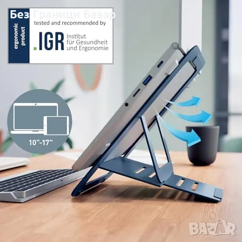 Гъвкава настройка: 5 комбинации на височина и ъгъл, подходящи за лаптопи и таблети (10" - 17")