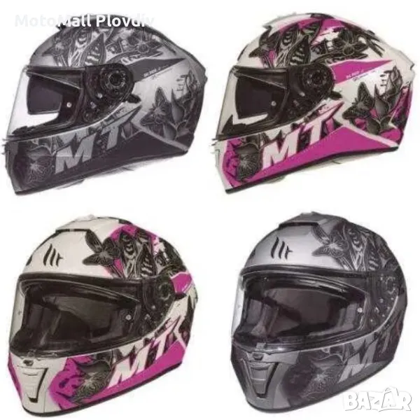 Най -добрата технология MT Helmets, испанската компания, специализирана в предпазни каски, представя тази грандиозна моторна каска за жени MT Blade 2 SV Breeze. Черупката му, изработена от инжектиран термопласт, включва новия си визьор MT - V -14, с дебелина 2,2 мм и завъртащ се механизъм, има и нова система за заключване на визьора, която подобрява запечатването на шлема. Този механизъм позволява лесна подмяна на визьора в лесен и бърз начин.