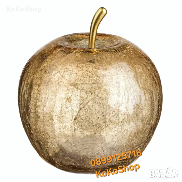 Декоративна стъклена лампа,с формата на ябълка. Съдържа 15 броя лампички,в топла бяла светлина. Може да се използва за украса на празнична маса,за нощна лампа или за декорация в дома или градината.