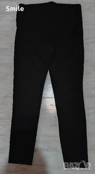 Еластичен дамски панталон ZARA, тип клин..Със страничен цип.в кръста. Отлично състояние., Цвят: наситен черен. Материята е страхотна, плътна.. Размер М. Размери, измерени от мен: ширина в кръста - 38 см., дължина - 87 см., дължина от чатала - 66 см. Изпращам с "Еконт" или със "Спиди"..