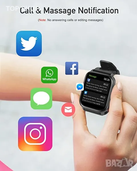 - Известия за обаждания и съобщения: когато свържете смарт часовника към вашия смартфон, никога повече няма да пропуснете обаждане или съобщение. ще вибрира и ще ви уведомява, когато телефонът ви получи обаждане, sms или sns известия (facebook, twitter, whatsapp, linkedi, messenger, instagram). можете дори да затворите входящи телефонни обаждания направо от китката си.