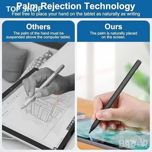 Отхвърляне на дланта и магнитно закрепване: Удобно поставяне на ръката върху екрана без случайни следи, плюс лесно закрепване към таблети.