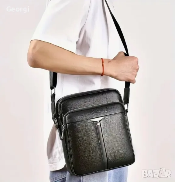 Красива, стилна и елегантна мъжка ежедневна кожена чанта с Италианска визия (за през рамо) в две лица!