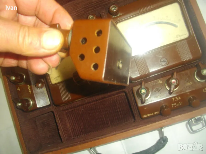 ОПИСАНИЕ на руска СССР измерителна ел.станция. Съвсем нов комплект, неизползван и неуптрубяван. В пълна и отлична техническа/работна изправност. Общо 5 бр. ел.уреди, прибрани в оригиналния си куфар с лицева страна кафява кожа и вътрешна част подплатена фабрично с кадифен плат.