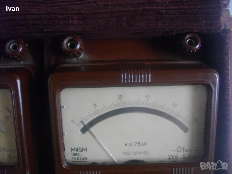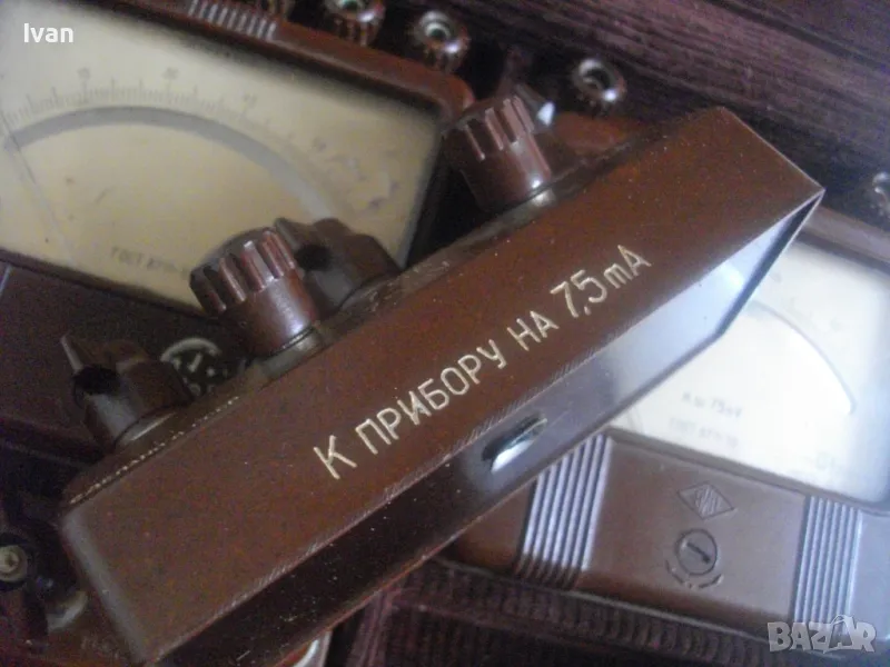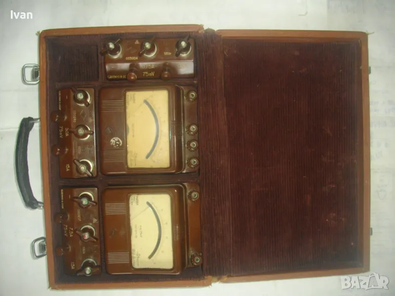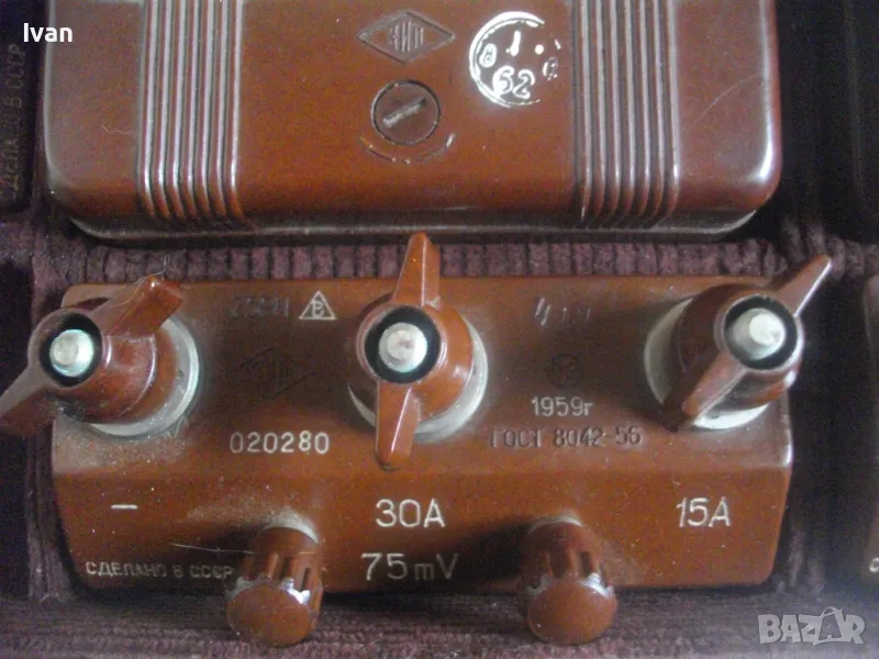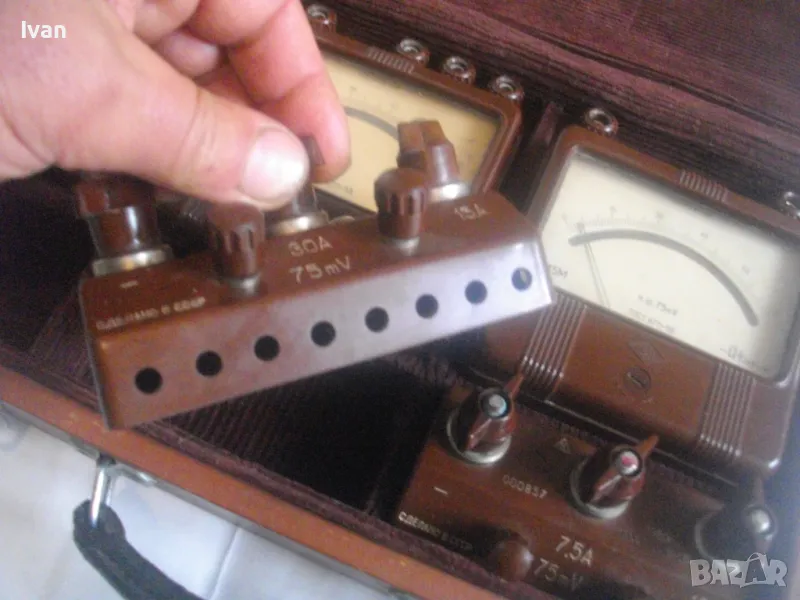 Единият апарат е за измерване до 30 ампера ,другия до 7,5 ампера, третия е до 0,75 А - 75 mV