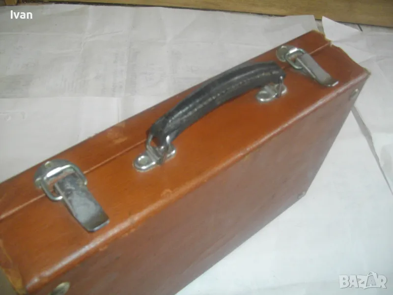 Куфара е дървен, с облицовка фабрично от външна част - кожа, вътре - кадифе. Метални копчалки и дръжка от метал и твърда кожа. Лицевата част на куфара по кожата има леко захабяване.