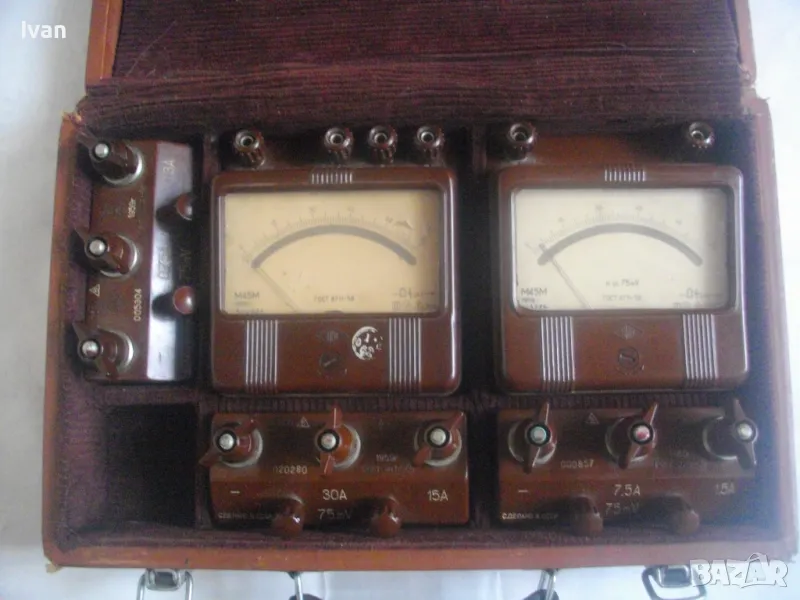 НОВА РУСКА СССР 1959г. ИЗМЕРВАТЕЛНА СТАНЦИЯ ДО 30 АМПЕРА М45М ПЪЛЕН КОМПЛЕКТ В КОЖЕНА ЧАНТА