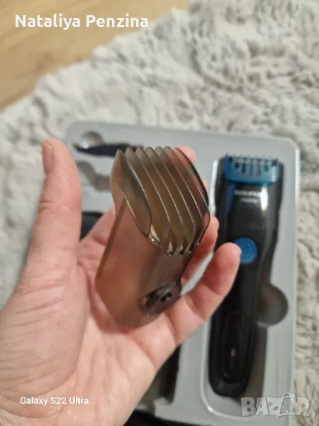 Като нова е. Ползвана само няколко пъти. Тази самобръсначка с 12 нива на подстригване е идеална за прецизно бръснене, приспособима към всеки стил. Неговата литиева батерия осигурява над 90 минути работа и 5-минутно бързо зареждане чрез USB-C, осигурявайки максимална ефективност. Освен това неговият водоустойчив IPX6 дизайн позволява както сухо, така и мокро бръснене, включително под душа. С пълен комплект аксесоари, включващ телескопични гребени, прецизен тример, тример за нос и уши и чанта за пътуване, той осигурява професионално бръснене у дома или в движение.