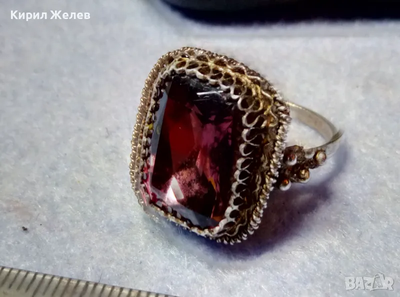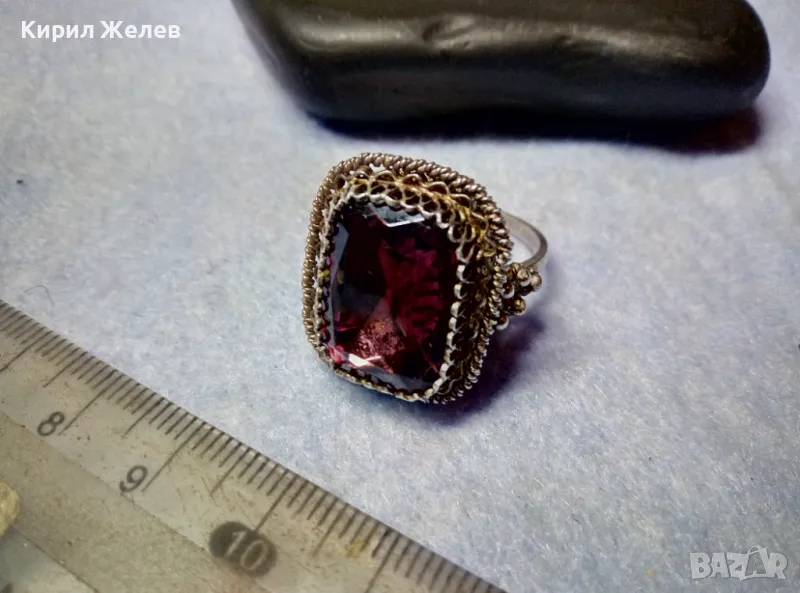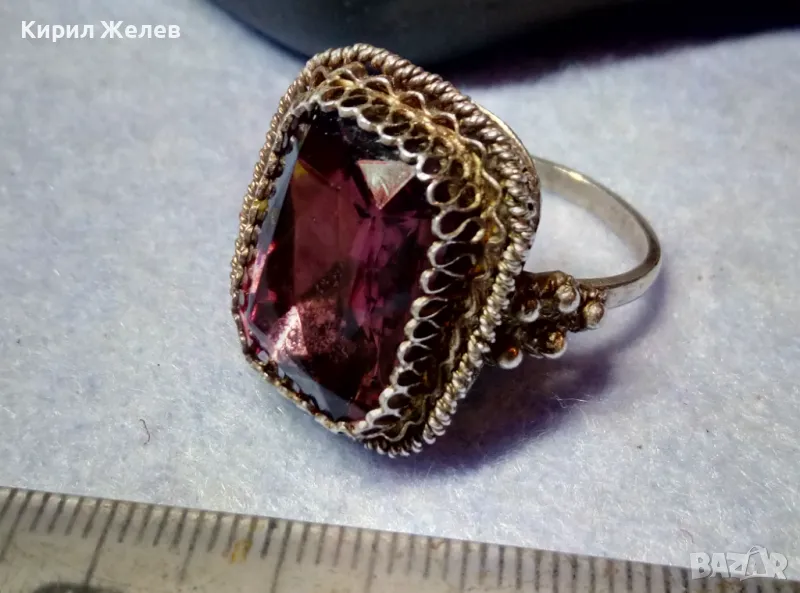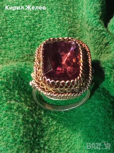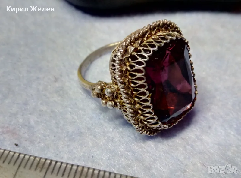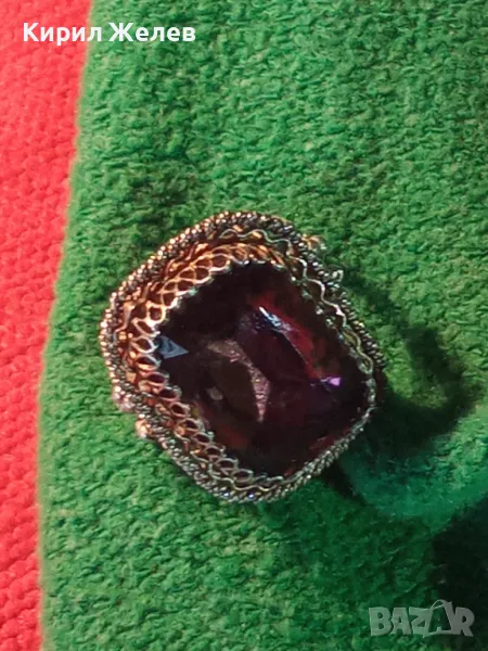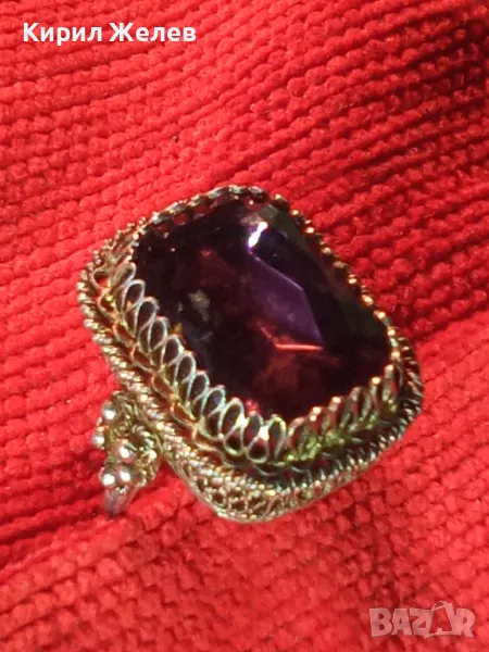 Старинен СКЪПОЦЕНЕН ФИЛИГРАНЕН СРЕБЪРЕН ПРЪСТЕН СРЕБРО 900 с ОГРОМЕН РЪЧНО ФАСЕТИРАН АМЕТИСТ 49916