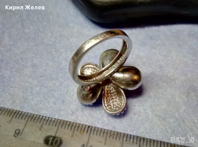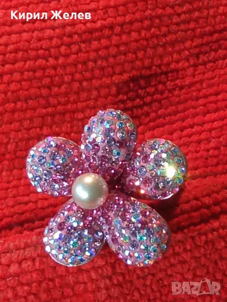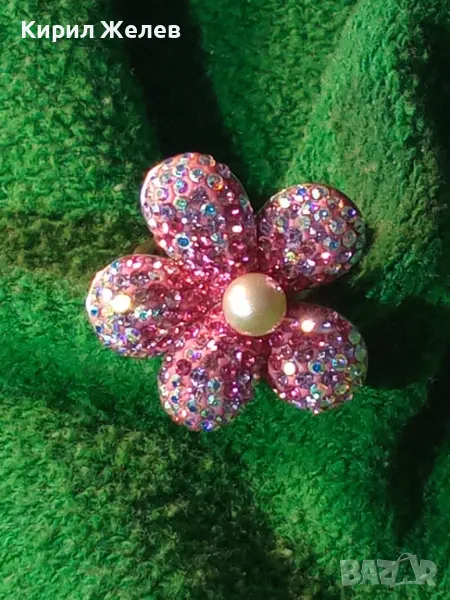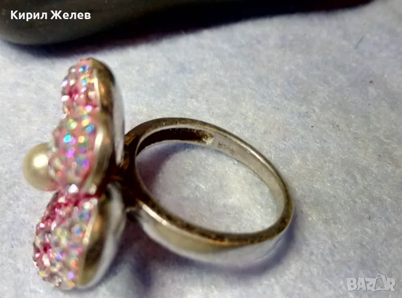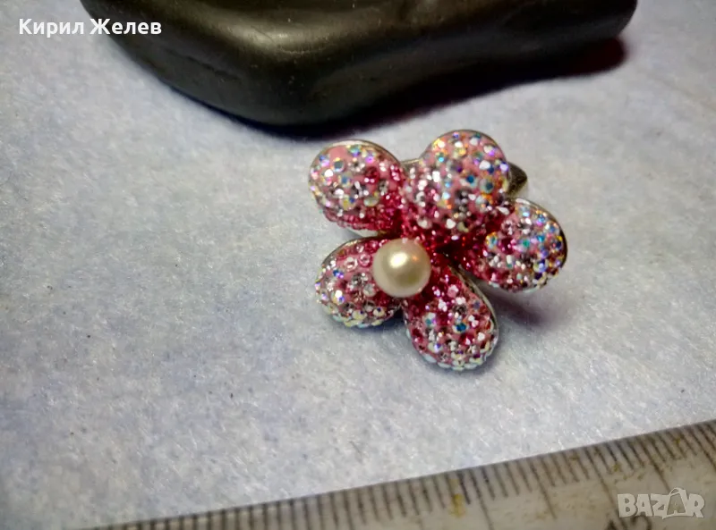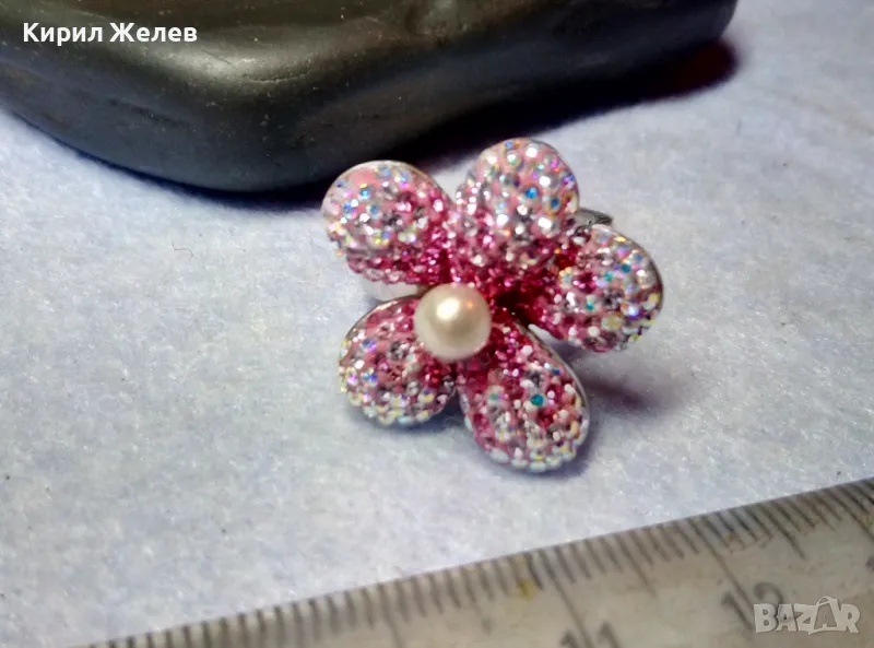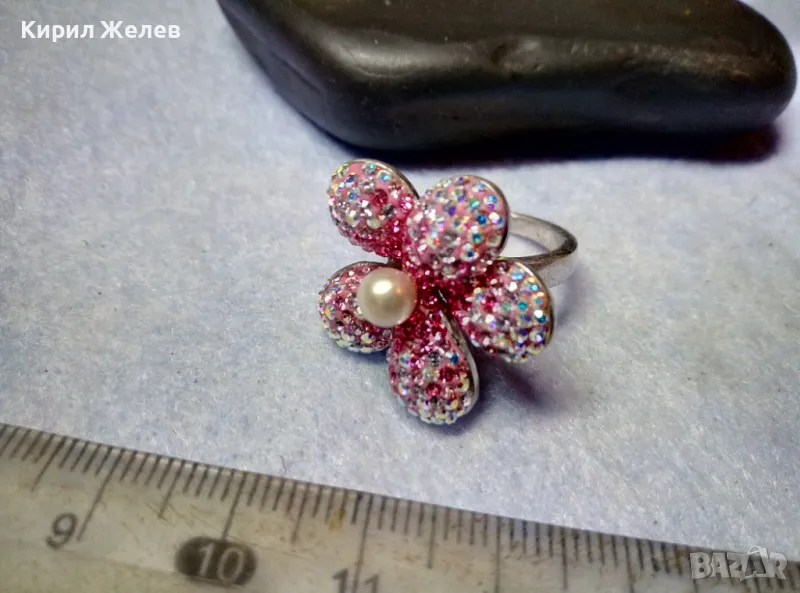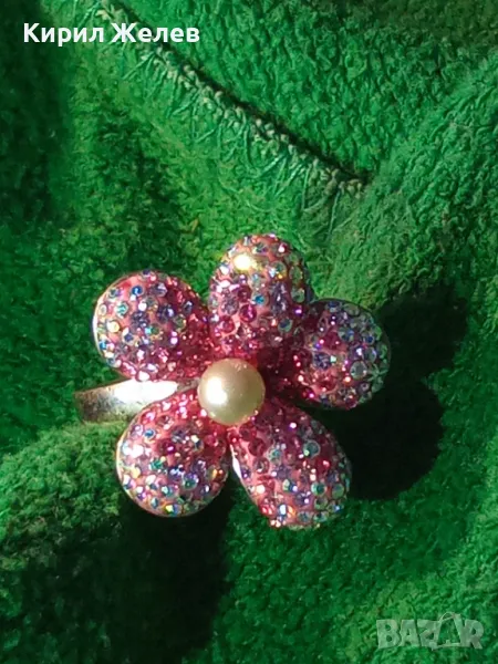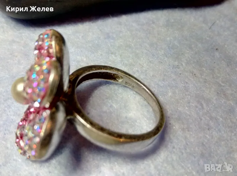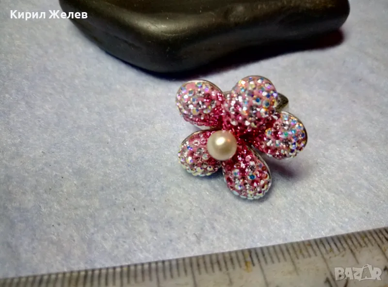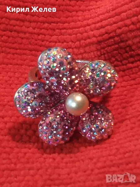 ПРЕКРАСЕН ФЛОРАЛЕН СРЕБЪРЕН ПРЪСТЕН ЦВЕТЕ СРЕБРО 925 с НАТУРАЛНА БЯЛА ПЕРЛА и ИСКРЯЩИ КРИСТАЛИ 49225
