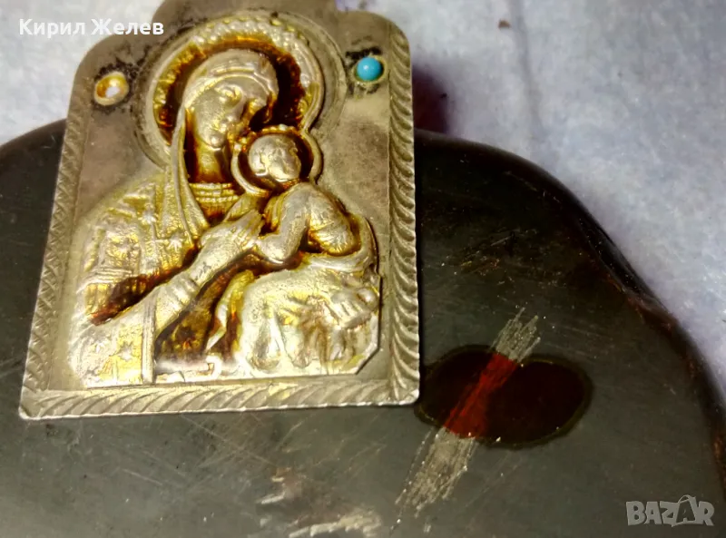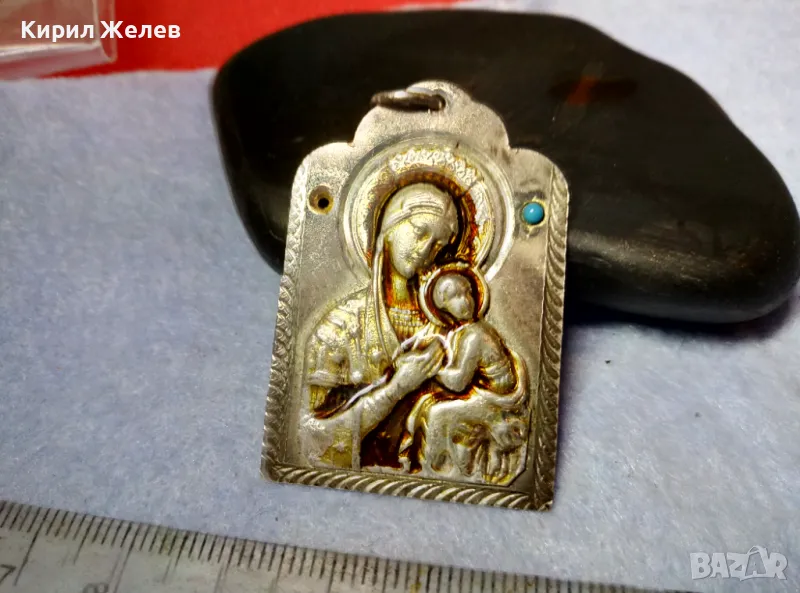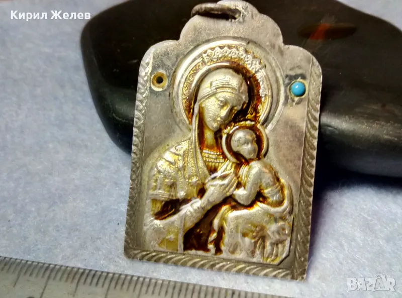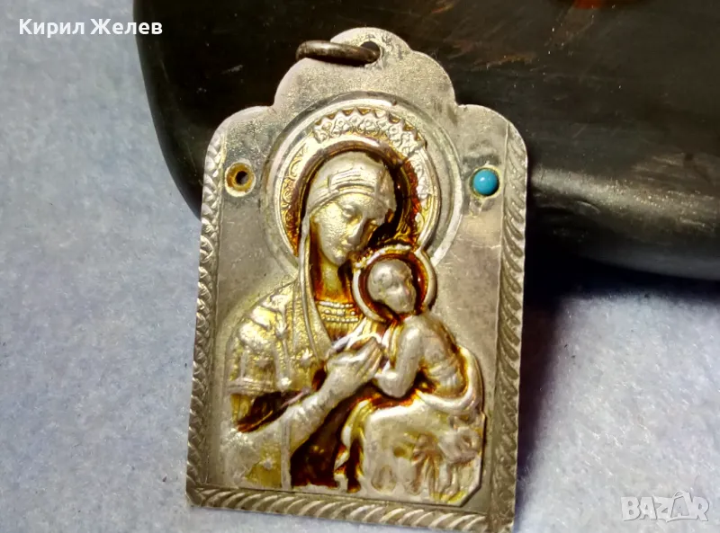 Стара ПРАВОСЛАВНА НАГРЪДНА СРЕБЪРНА ИКОНА СРЕБРО 925 с ТЮРКОАЗ ХУДОЖЕСТВЕНА РЪЧНА ИЗРАБОТКА 49917