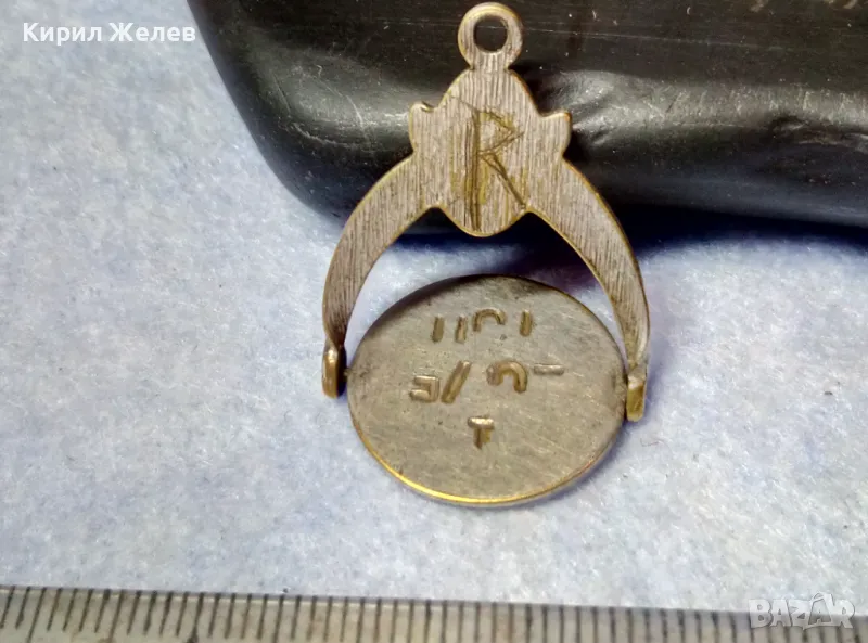 Стар ПЪРВА СВЕТОВНА ВОЙНА ПОСРЕБРЕН БРОНЗОВ ВОЕНЕН ПЕЧАТ - ТАЛИСМАН ДВУСТРАНЕН РЯДЪК 50101