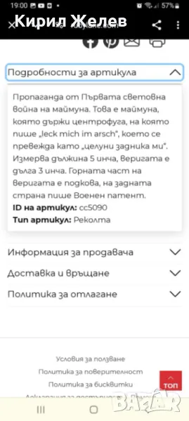 3-та и 4-та СНИМКА са ИЛЮСТРАТИВНИ от ГУГЪЛ за ПОДОБЕН ПЕЧАТ! / Пускам голяма СЕРИЯ от майсторска ръчна изработка старинни и нови СРЕБЪРНИ БИЖУТА - пръстени, обеци, медальони, гривни, ланци, колиета, брошки - някои са инкрустирани със скъпоценни или полускъпоценни камъни. Всичките са ТЕСТВАНИ ПРОФЕСИОНАЛНО върху лидийски камък с пробер - киселина за сребро, като особено по-старите, ръчно изработени и без маркировка които са, е заснето и резултата на камъка - яркочервеният цвят при натъркване и капване на киселината показва, че са от масивно СРЕБРО ВИСОКА ПРОБА. Има и накити от САЧАН /нископробна сребърна сплав, с която са работели старите майстори - куюмджии от периода на ВЪЗРАЖДАНЕТО и края на 19-ти век/, мед, бронз и благородна стомана с позлата или посребряване. Снимките ги ОНАГЛЕДЯВАТ! Имам НАД 27000 обяви в профила си - За ВСЕКИ по НЕЩО...! Изпращам по Еконт или Спиди с опция Преглед/Тест и отстъпка-транспорт.