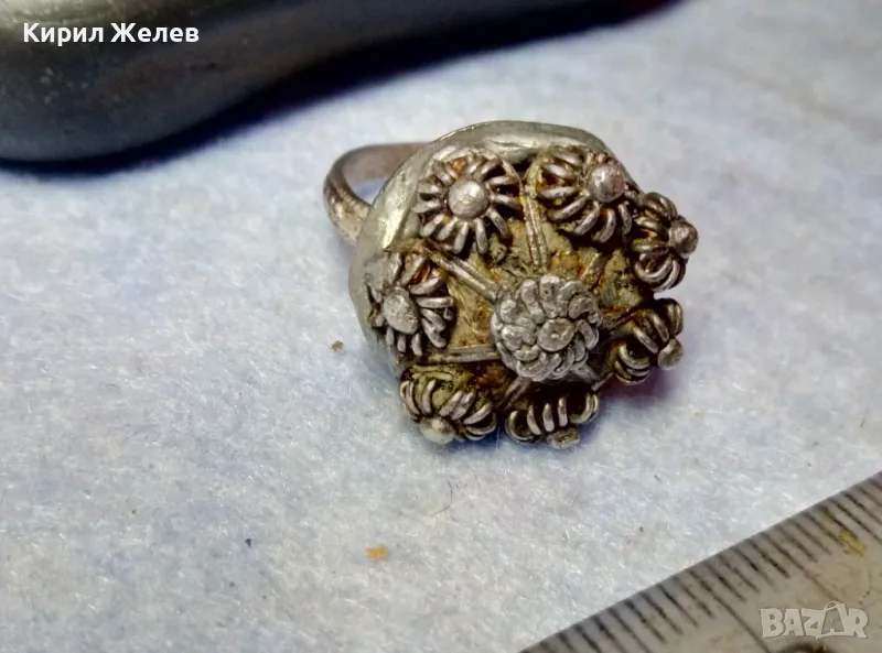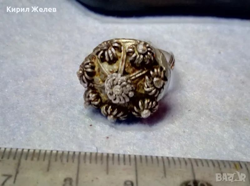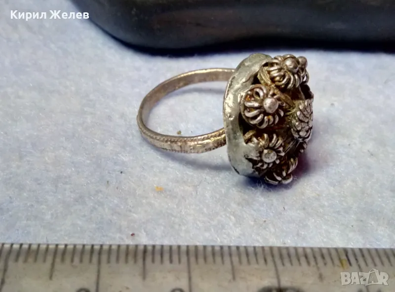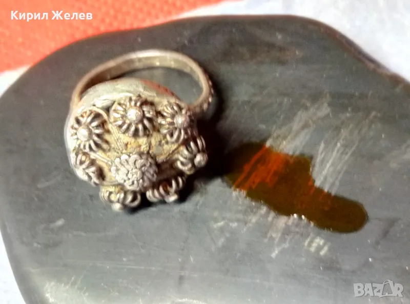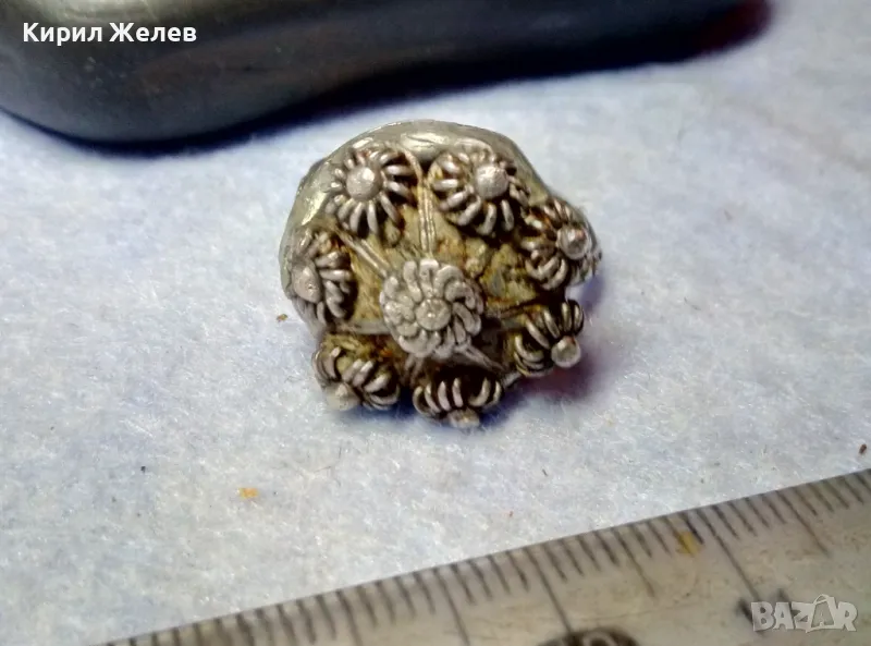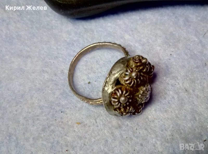 Старинен ВЪЗРОЖДЕНСКИ ФИЛИГРАНЕН СРЕБЪРЕН ПРЪСТЕН СРЕБРО ВИСОКА ПРОБА РЪЧНА КУЮМДЖИЙСКА РАБОТА 47507