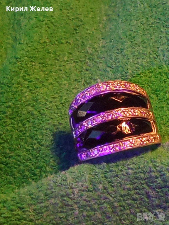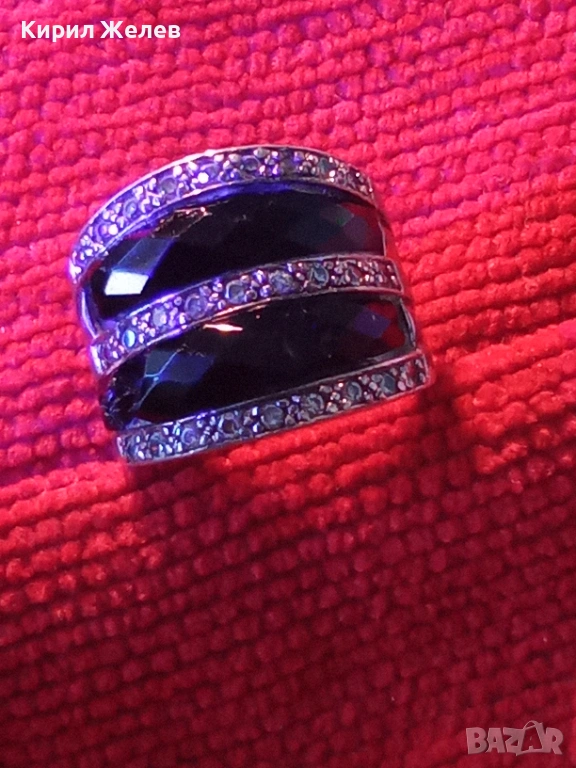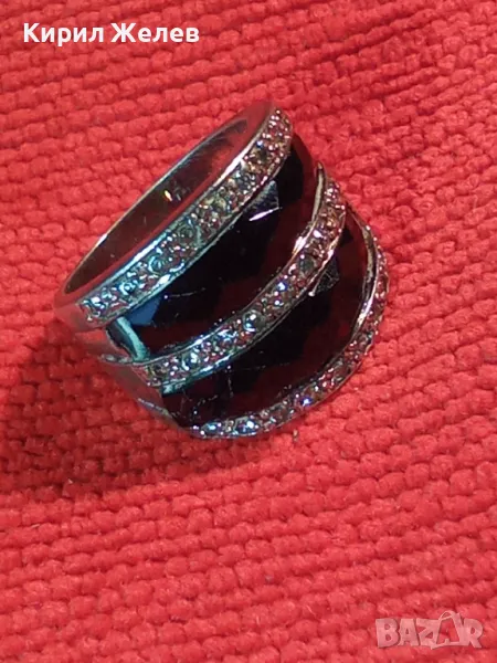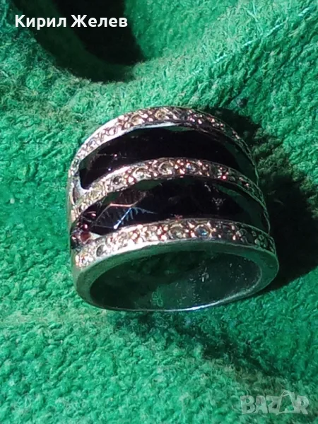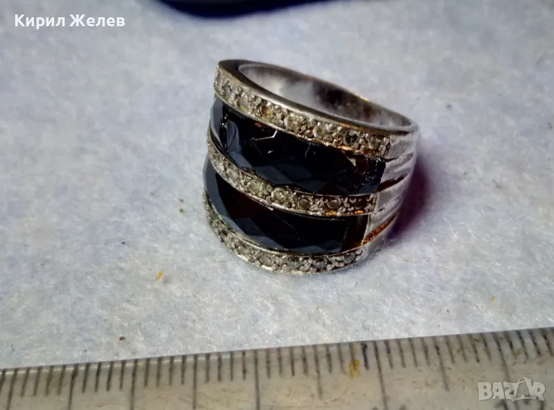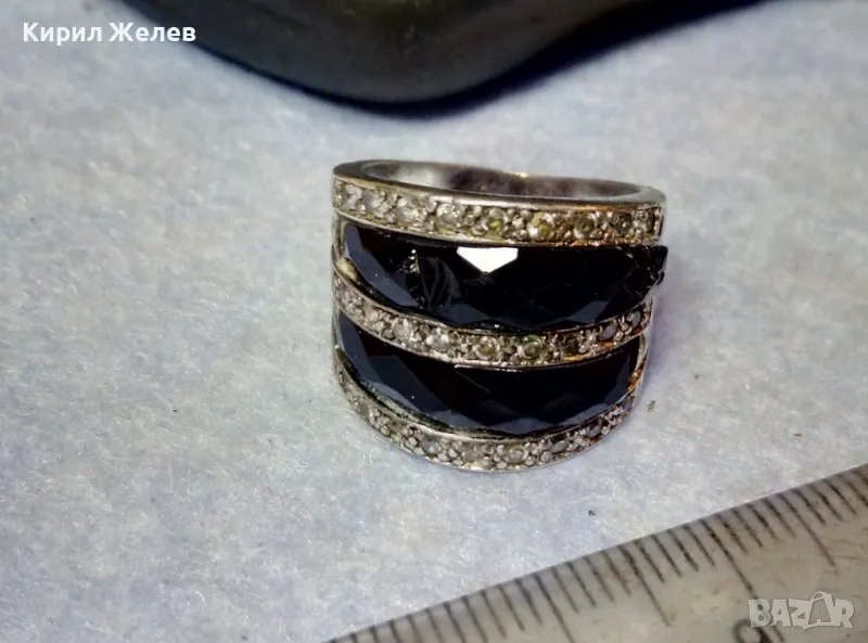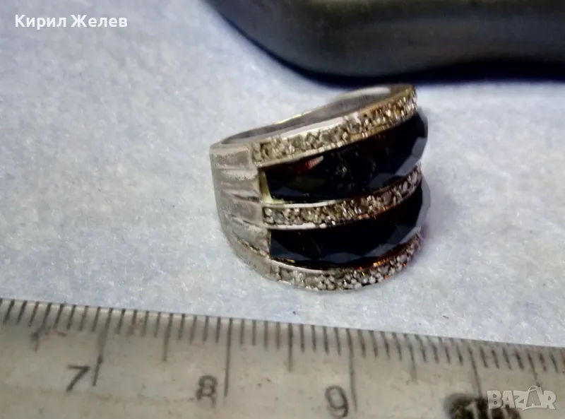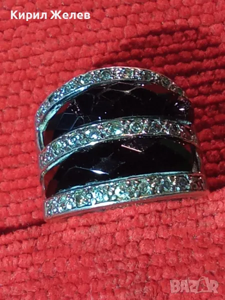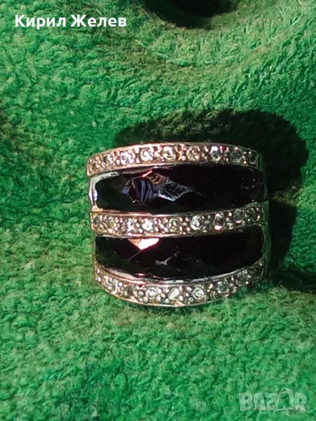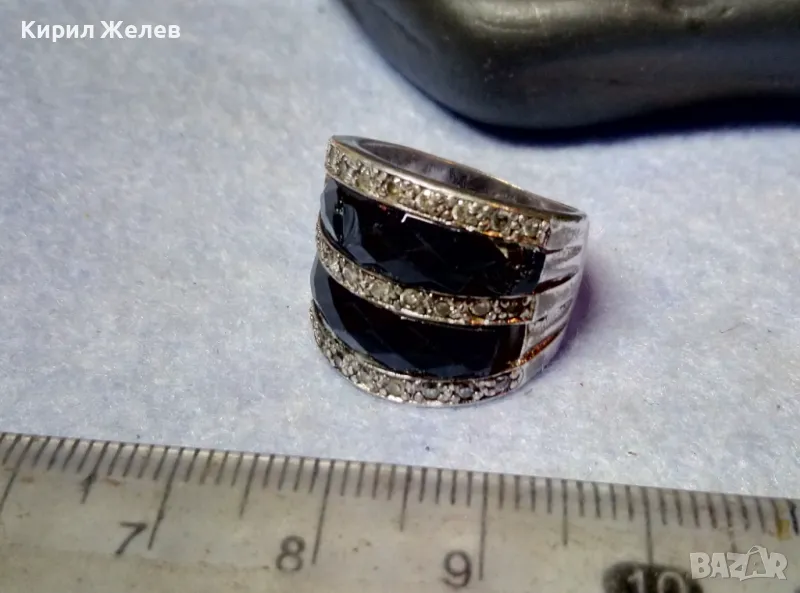СТАР ШИКОЗЕН СТИЛЕН СРЕБЪРЕН ПРЪСТЕН СРЕБРО 925 с ФАСЕТИРАН ОБСИДИАН и ИСКРЯЩИ ЦИРКОНИ 49309